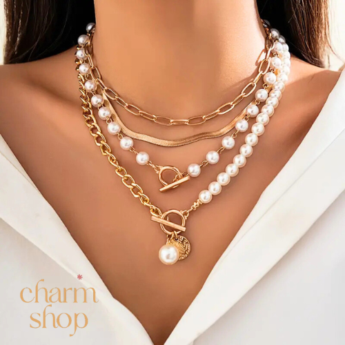 Nyaklánc összeállítás - boho 2 láncos gyöngyös aranyszínű
