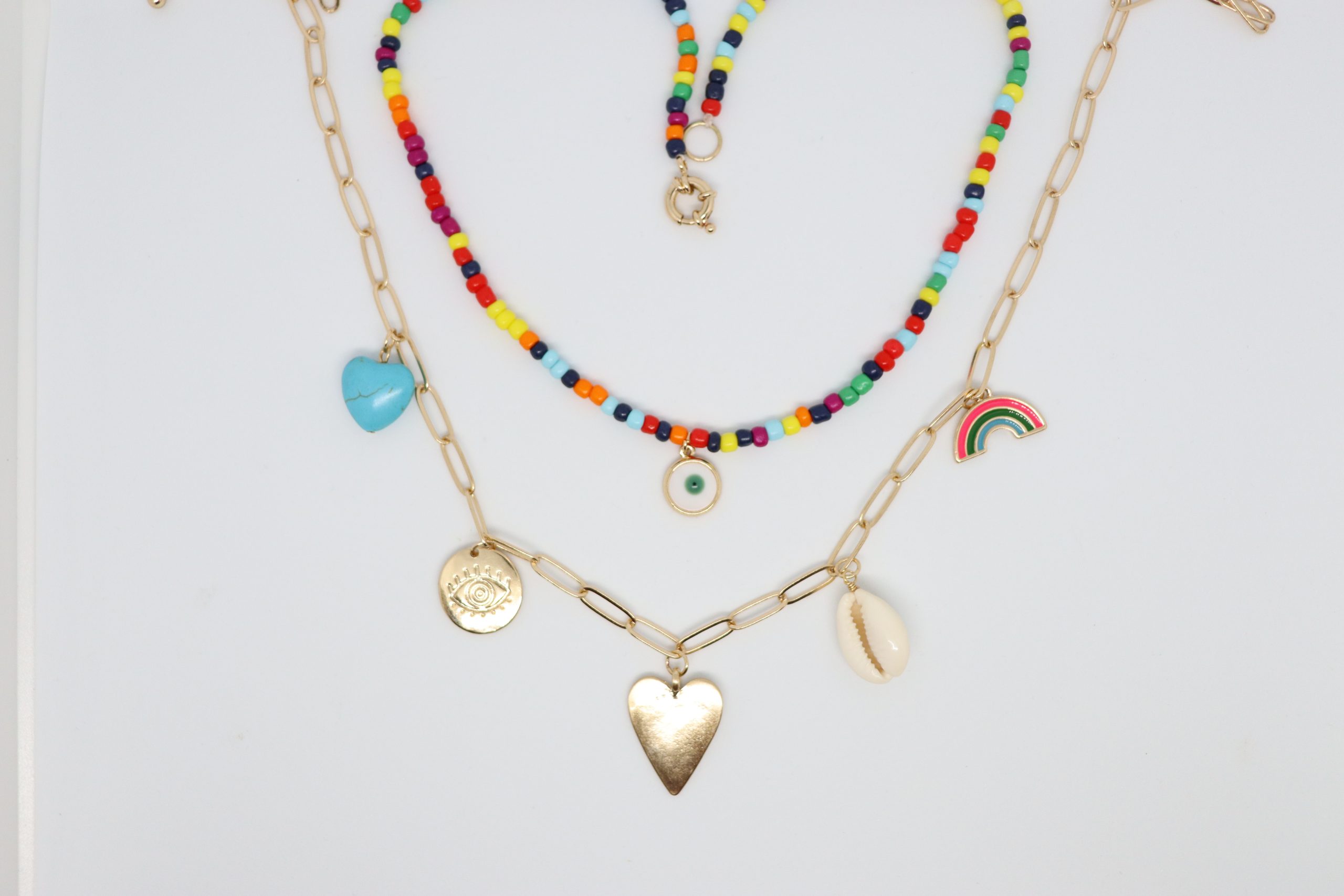 Piros evil eye charm nyaklánc összeállítás, mely bátorságot és energiát ad
